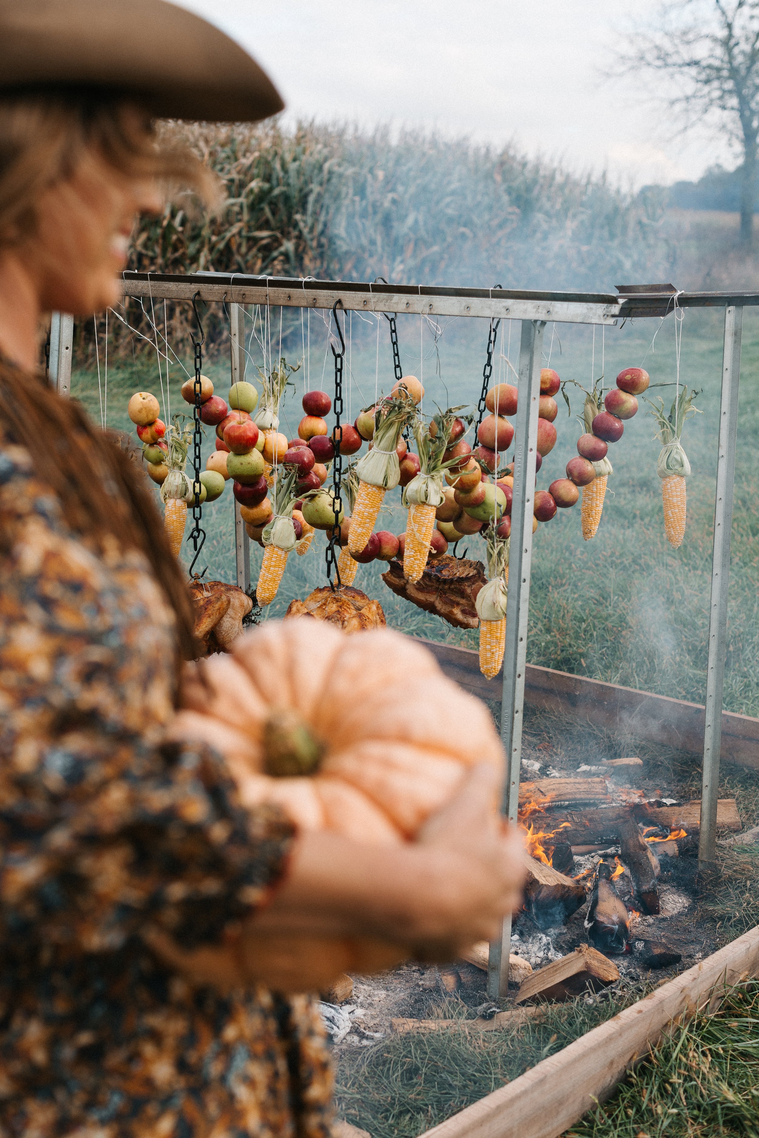 The fall feast continues. In this second part of the Thanksgiving series, we take you straight into the action — fires lit, ingredients prepped, and a full harvest celebration coming to life in Lancaster, Pennsylvania. You’ve already seen the outdoor kitchen setup with the help of my mum, and now it’s time to get cooking. This episode is all about the theatre of open-fire cooking: kiln-dried wood crackling, meats hanging over the flames, squash roasting in the coals, and a long rustic table being styled for friends and family to gather around. From carving pumpkins into vases to setting the final tablescape, we show exactly how a feast of this scale comes together — heart, craft, and a whole lot of teamwork. So grab a warm drink and dive into part two of this Thanksgiving adventure, here we turn the fire up and bring the harvest table to life.